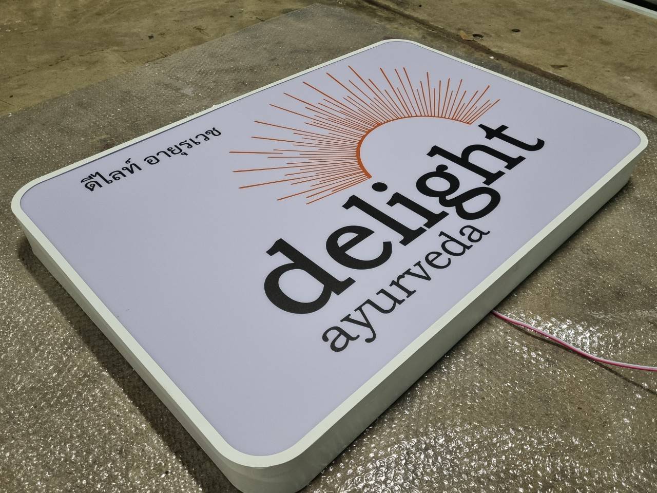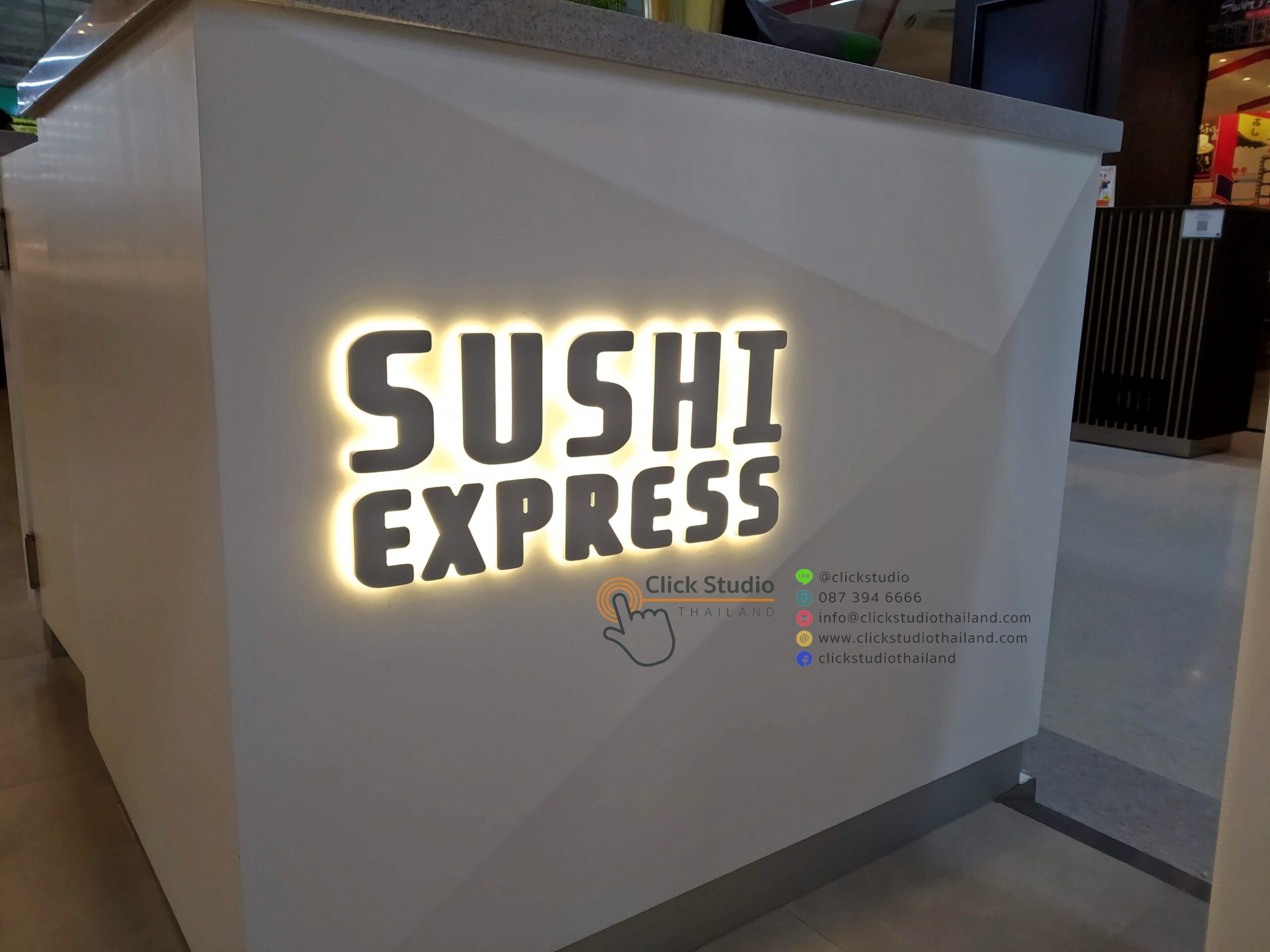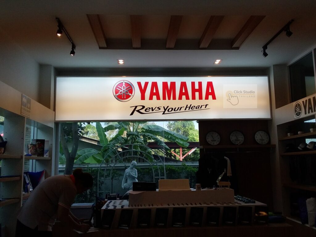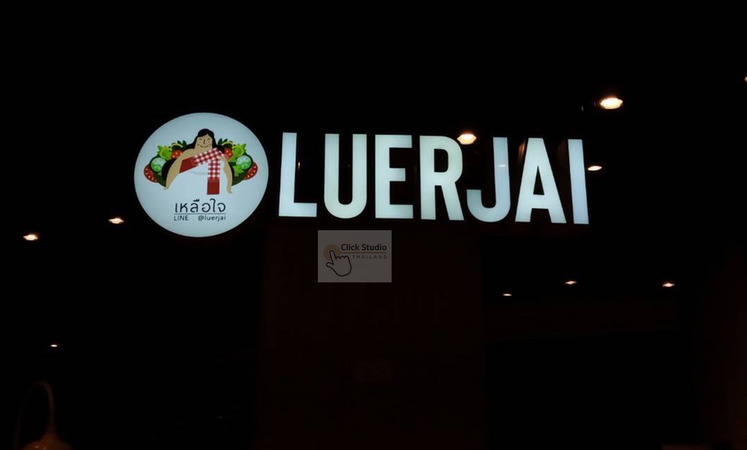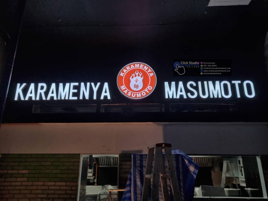ป้ายที่แสงสว่างส่องออกด้านหลัง โดยแสงไฟจากด้านหลังอักษรจะเป็นเงา สะท้อนตัวอักษรและโลโก้ให้มีความโดดเด่น สวยงาม
