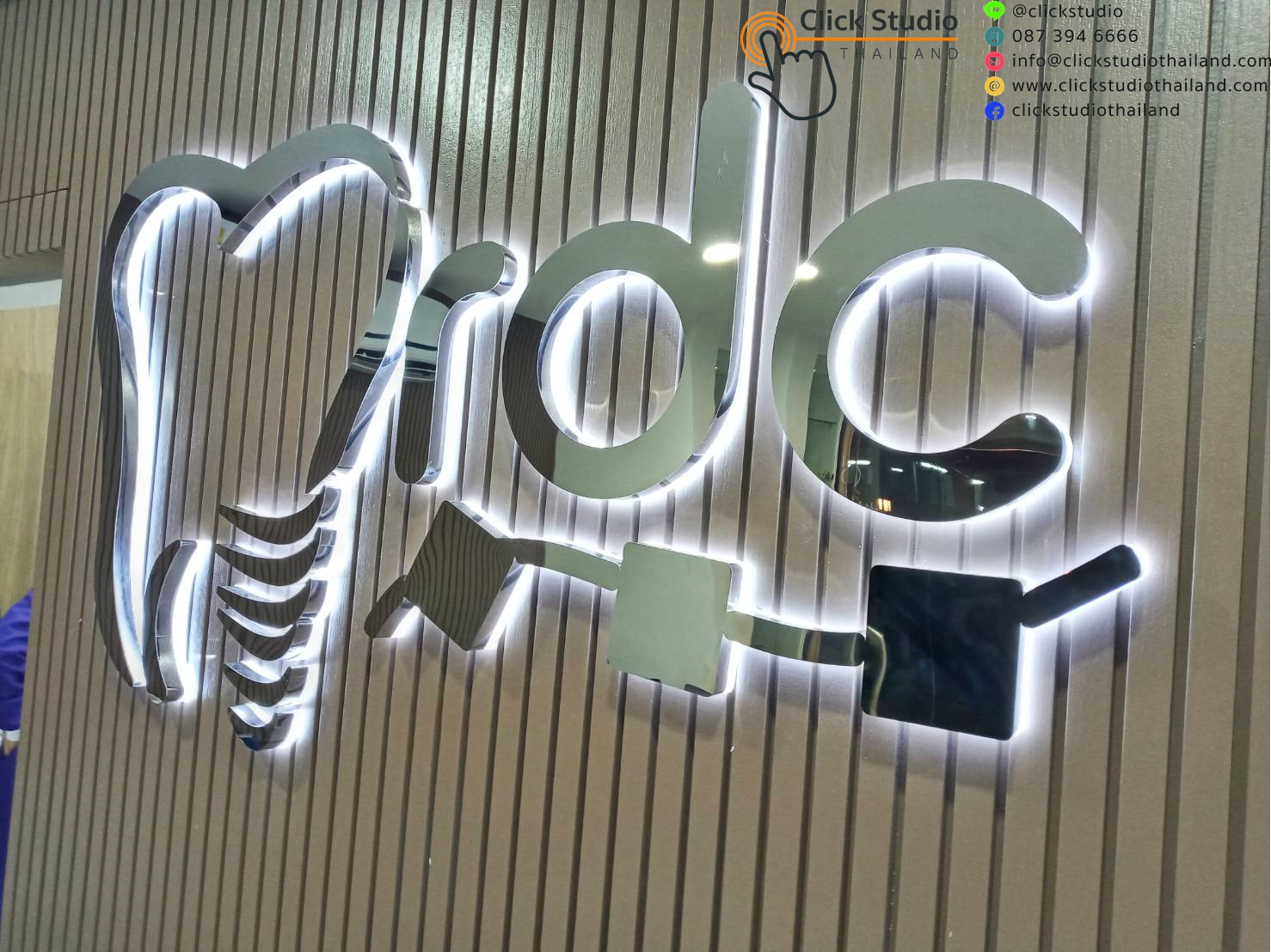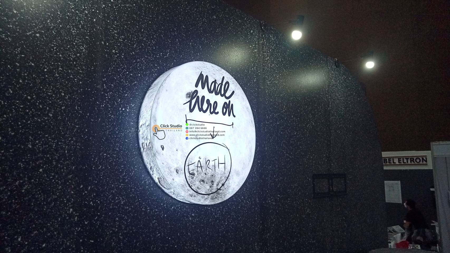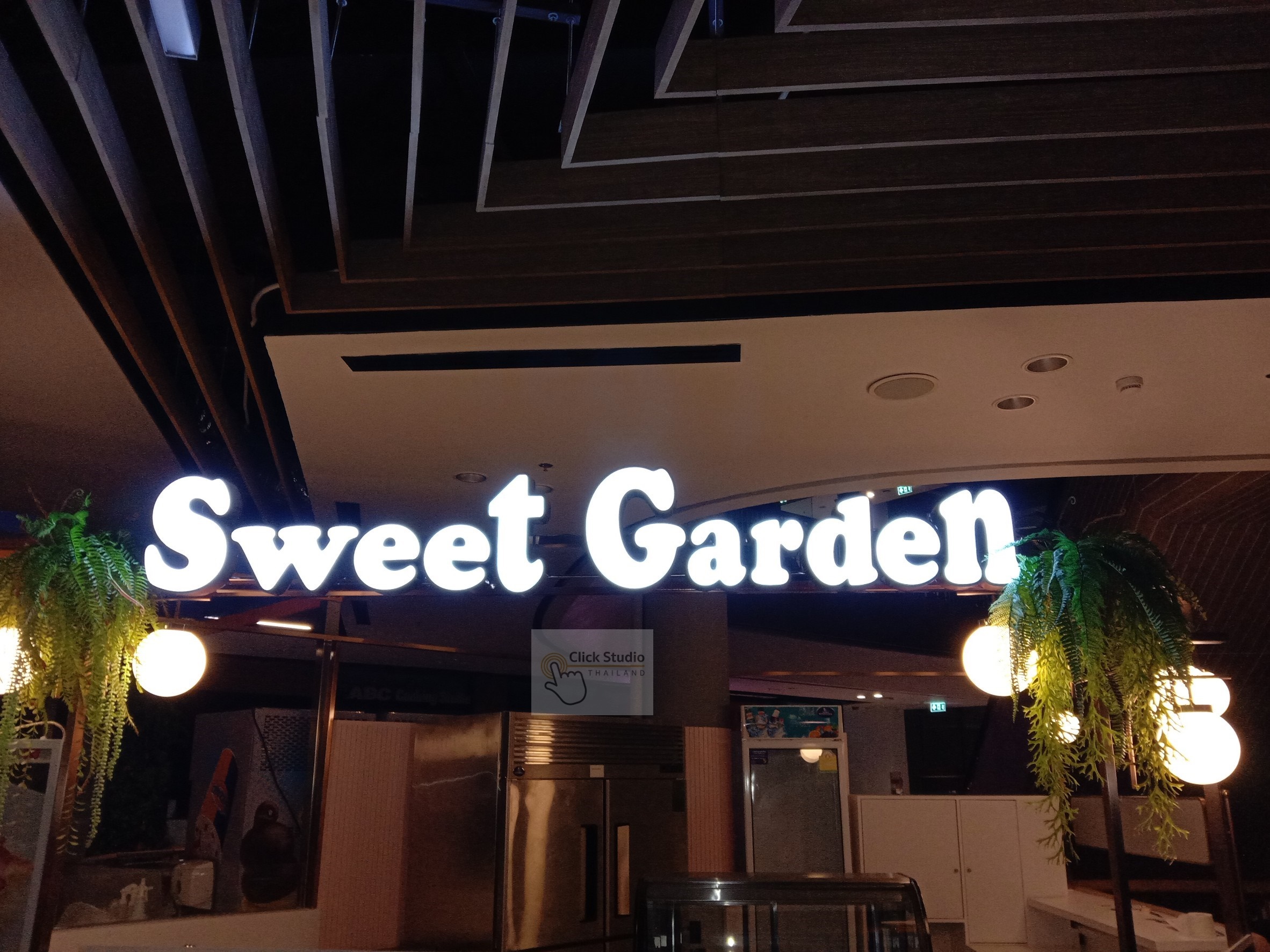 ป้ายที่แสงสว่างส่องออกด้านหลัง โดยแสงไฟจากด้านหลังอักษรจะเป็นเงา สะท้อนตัวอักษรและโลโก้ให้มีความโดดเด่น สวยงาม