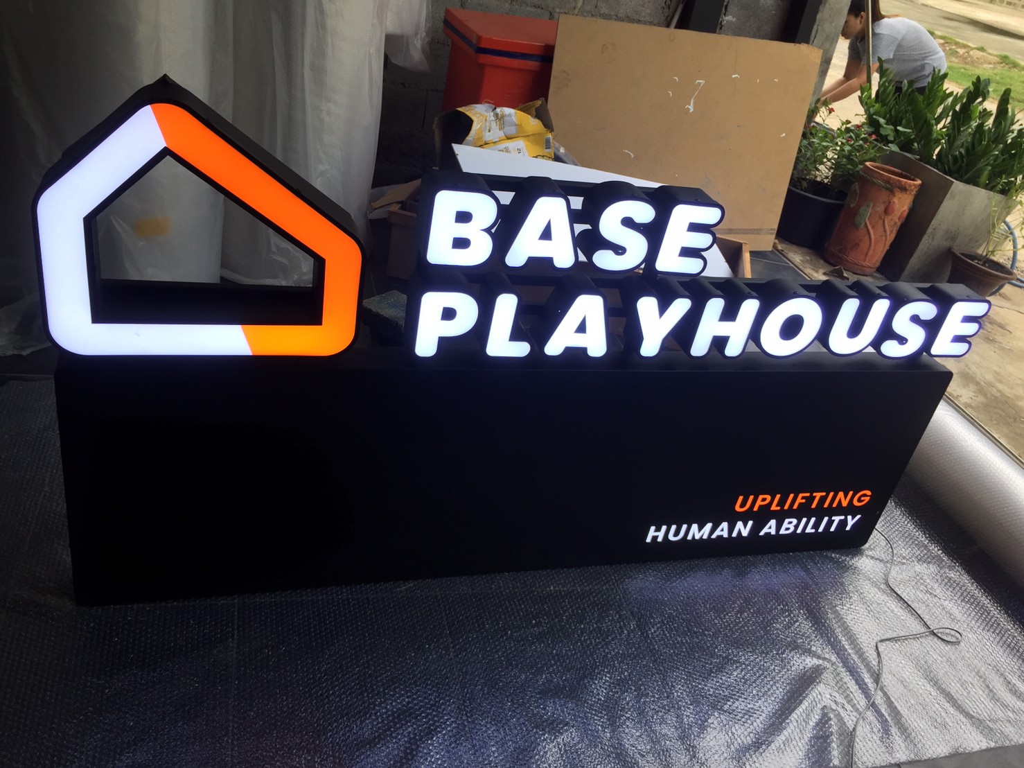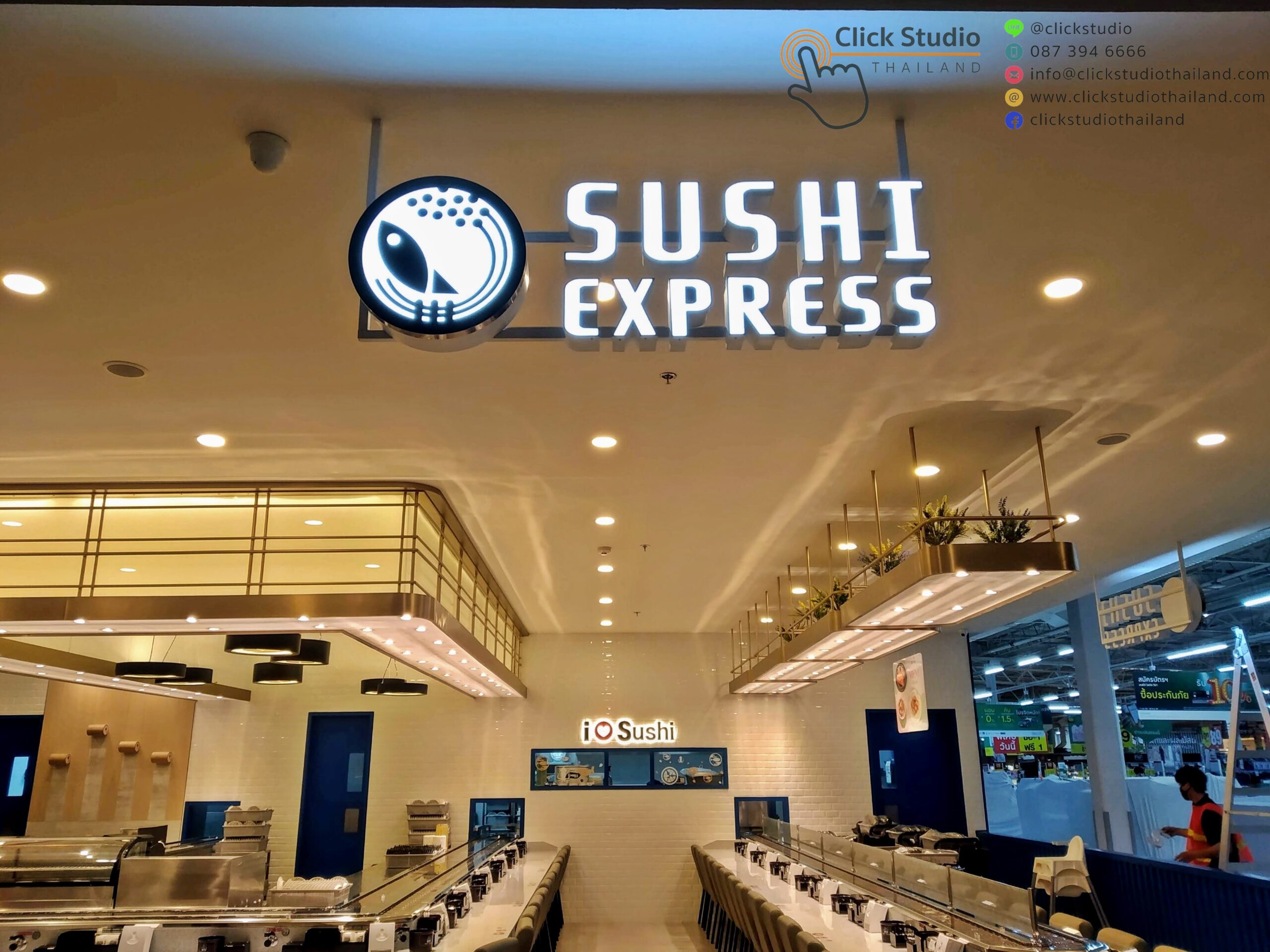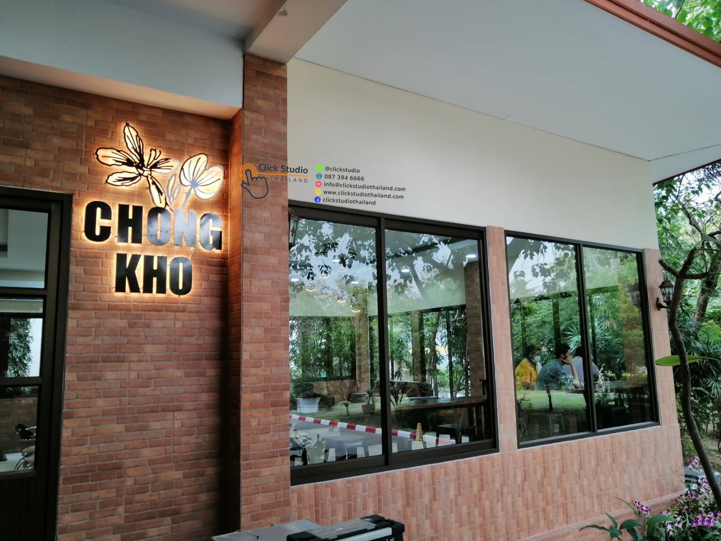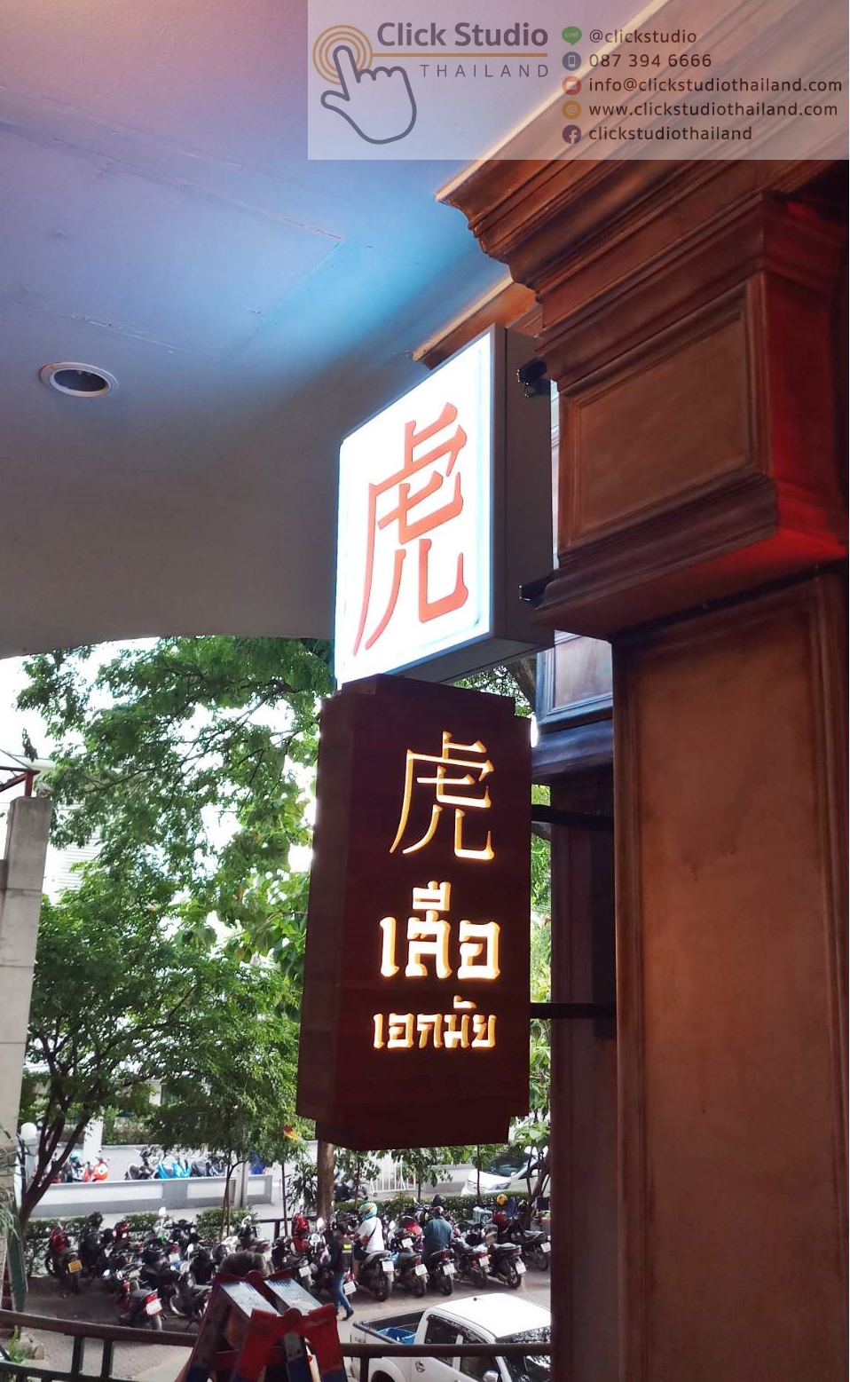 ป้ายที่แสงสว่างส่องออกด้านหลัง โดยแสงไฟจากด้านหลังอักษรจะเป็นเงา สะท้อนตัวอักษรและโลโก้ให้มีความโดดเด่น สวยงาม