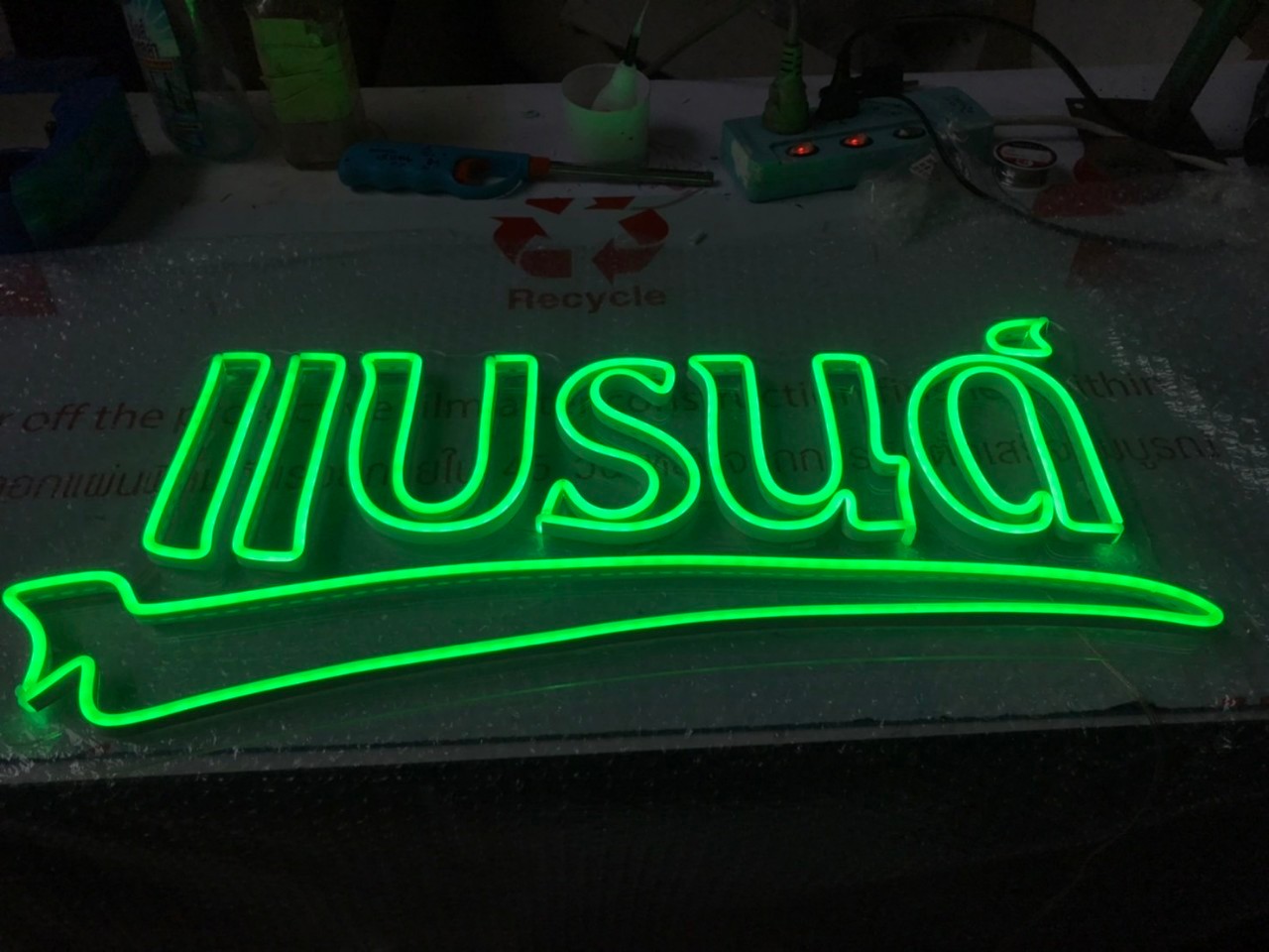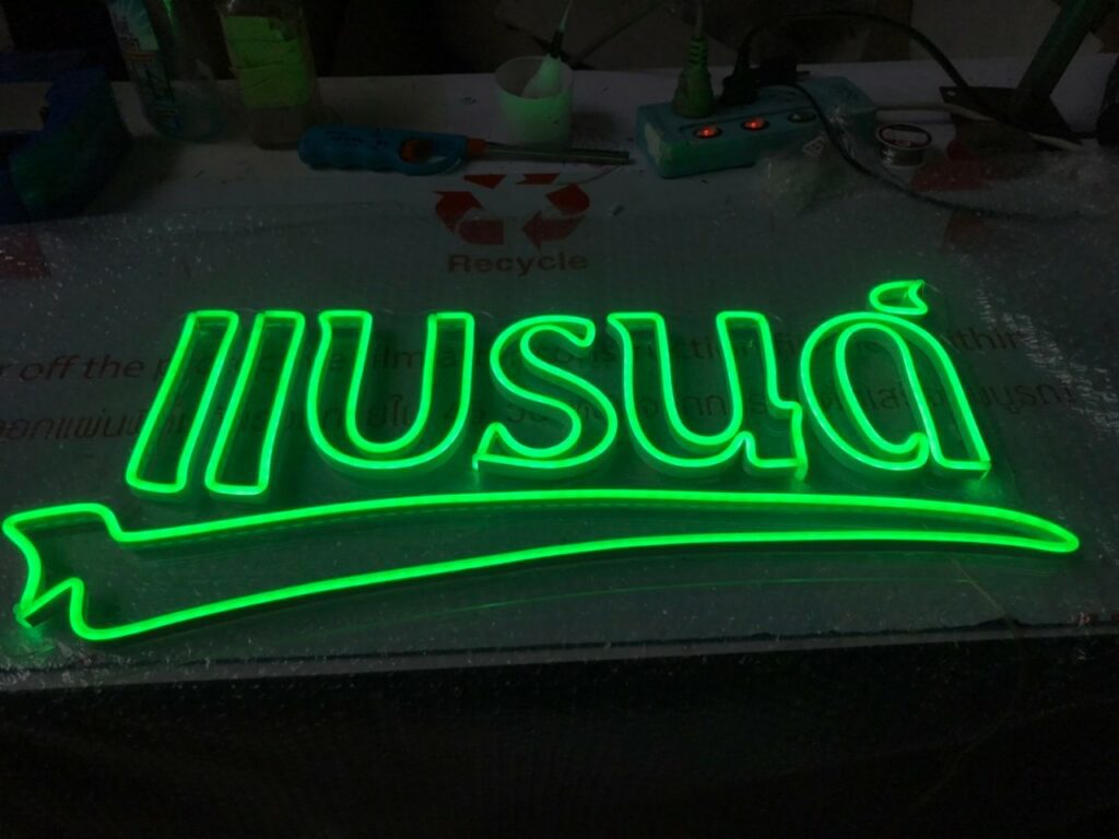 ป้ายไฟคล้ายกับไฟนีออนดัด แต่เป็นเส้นไฟยาง ที่ต้องมีพื้นรองหลัง (อะคริลิคหรือพลาสวูด) เพื่อให้ดัดรูปร่างให้ได้ตามที่ต้องการ